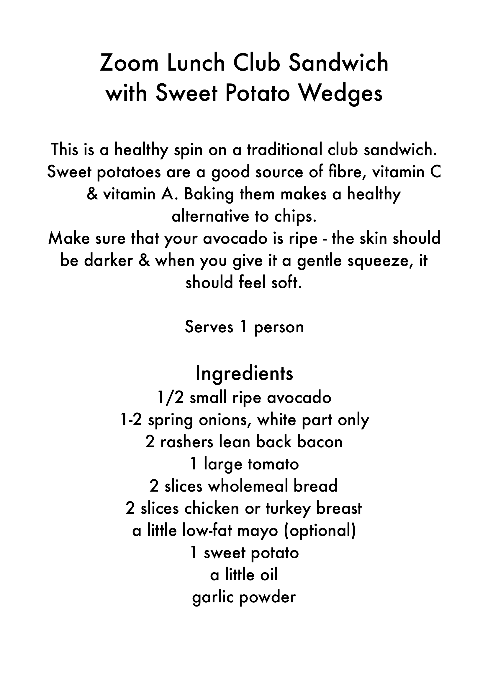 10/03/21 – Zoom Lunch Club Sandwich with Sweet Potato Wedges