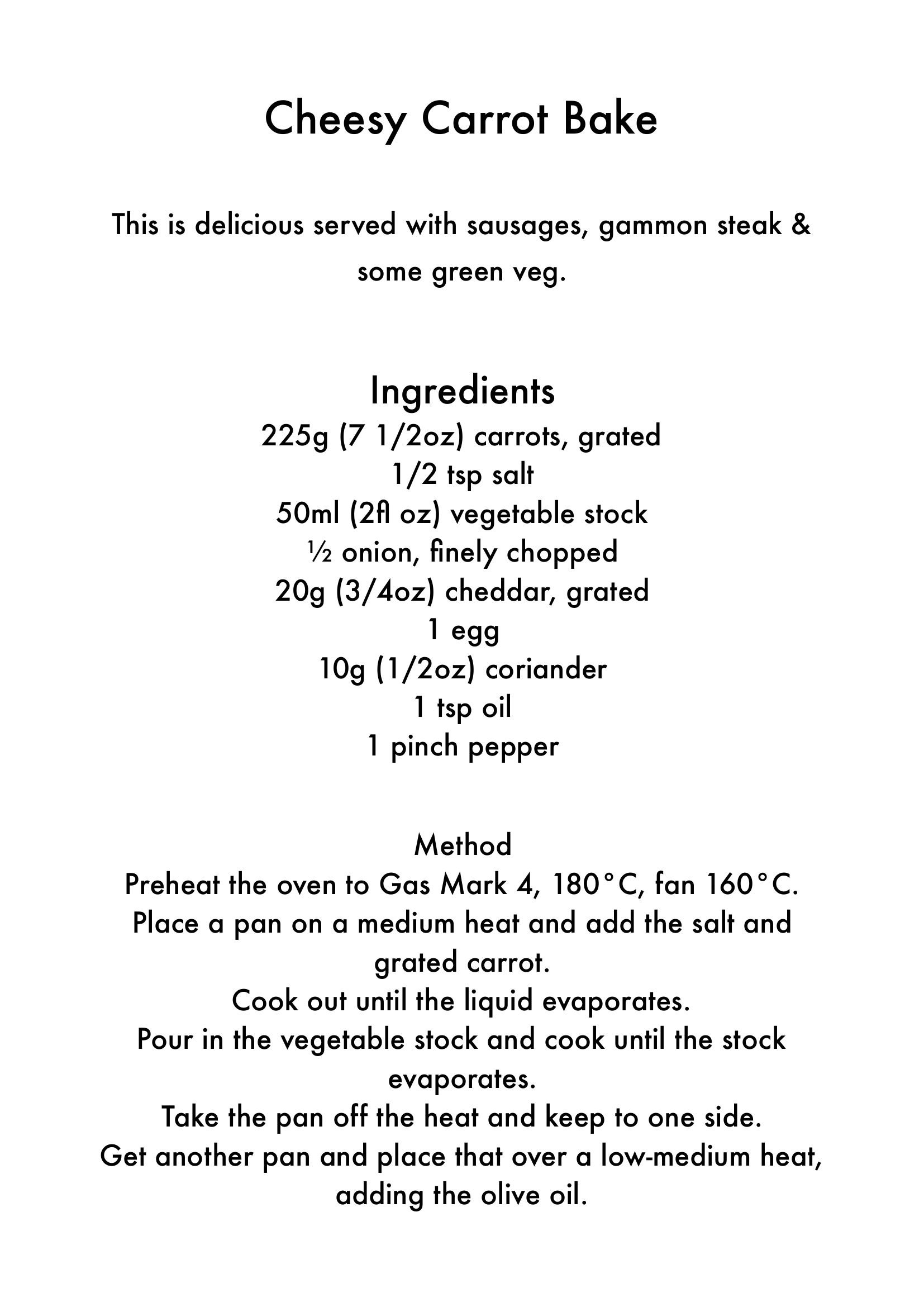 23/11/2020 – Cheesy Carrot Bake
