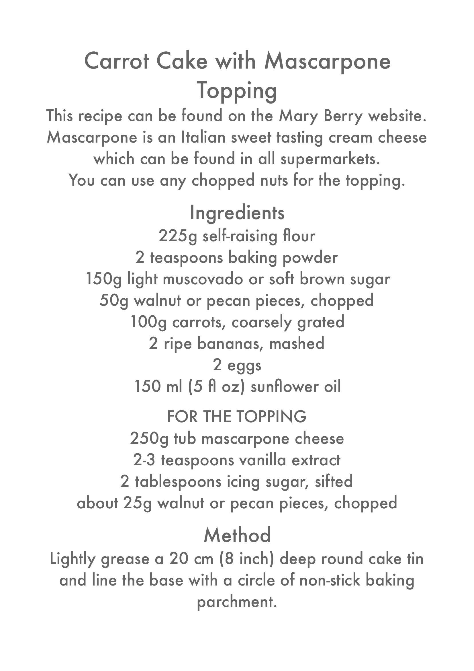 26/03/21 – Carrot Cake with Mascarpone Topping