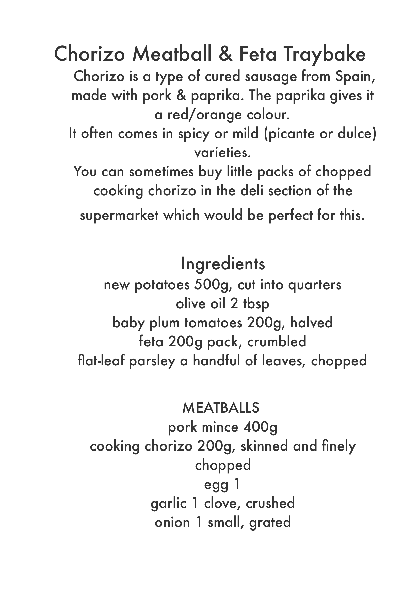 31/03/21 – Chorizo Meatball & Feta Traybake