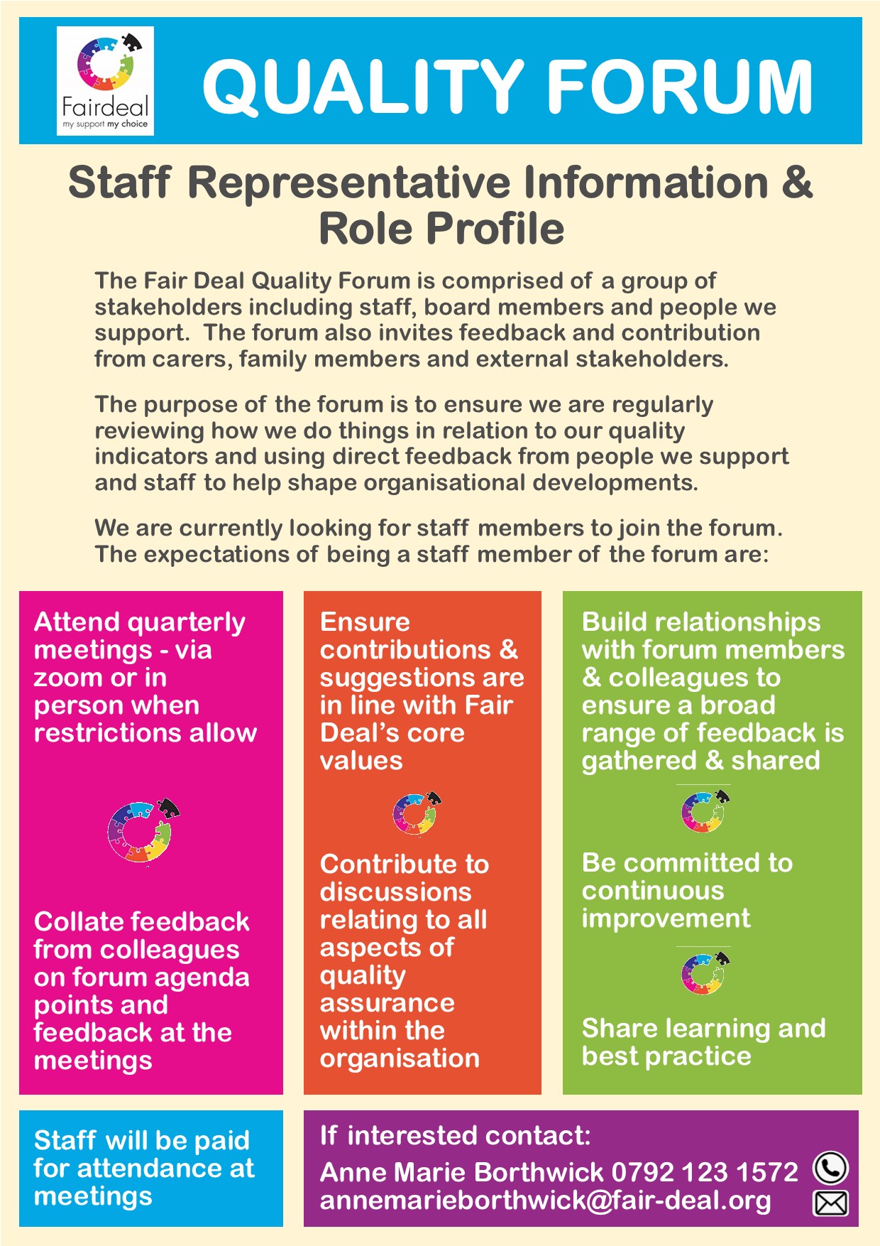 We are looking for staff representatives to join the Quality Forum.