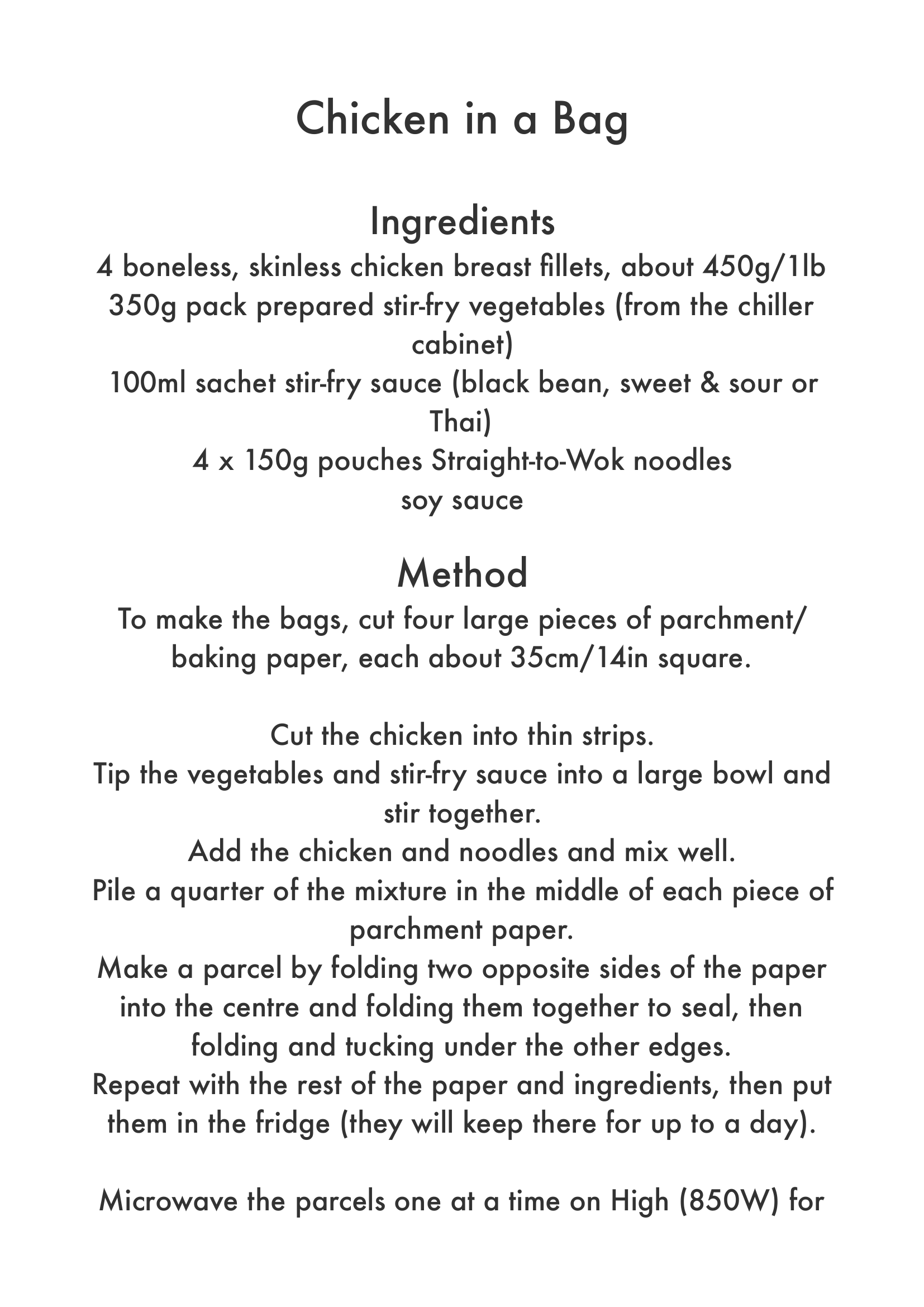 Recipe – Chicken in a bag
