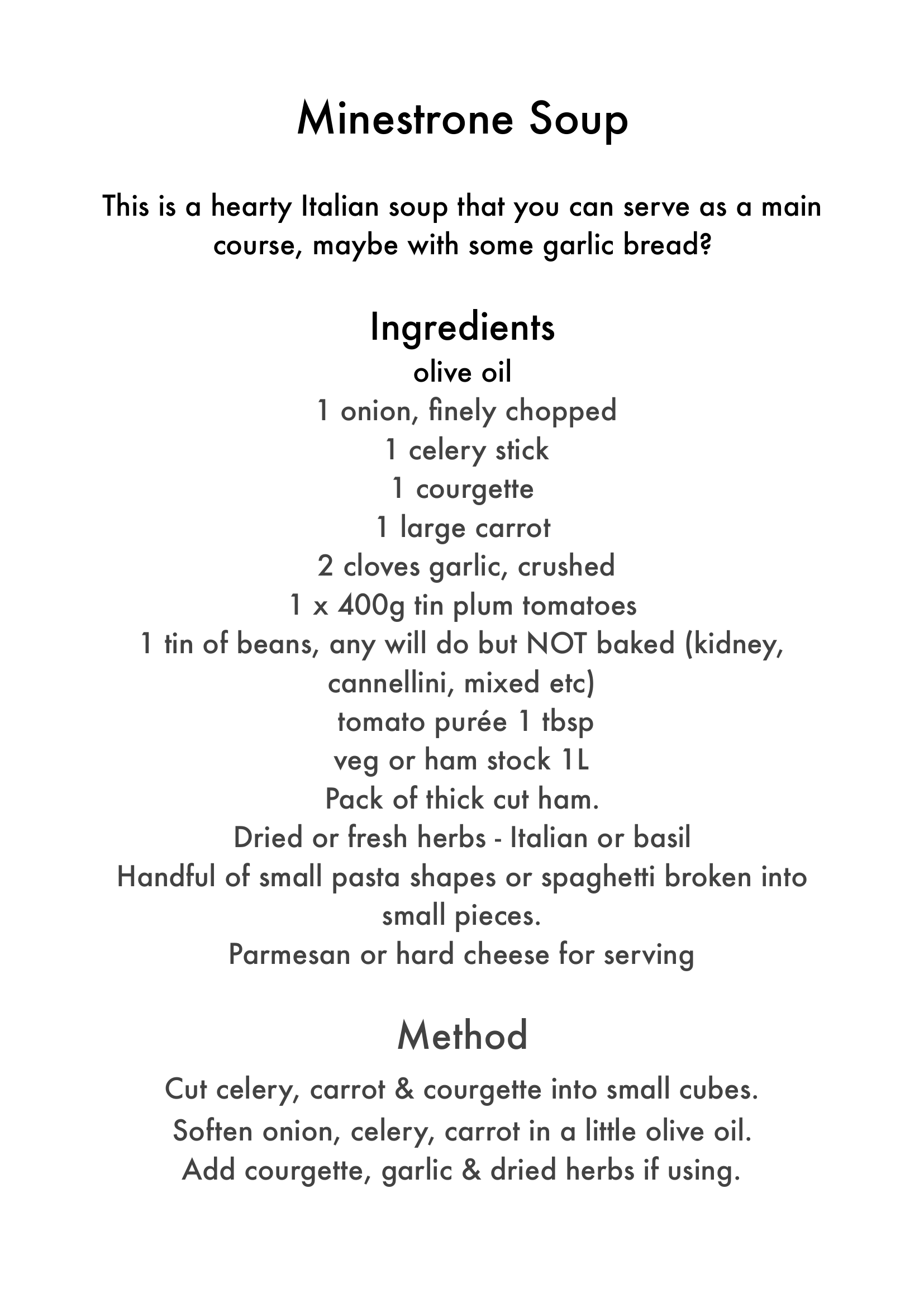 Recipes – Minestrone Soup 9/11/2020